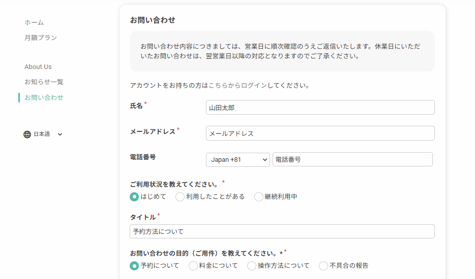 注意事項や回答目安、問い合わせ前の確認事項などを自由に記載することで、ユーザーの利便性と業務の効率を高めることができます。