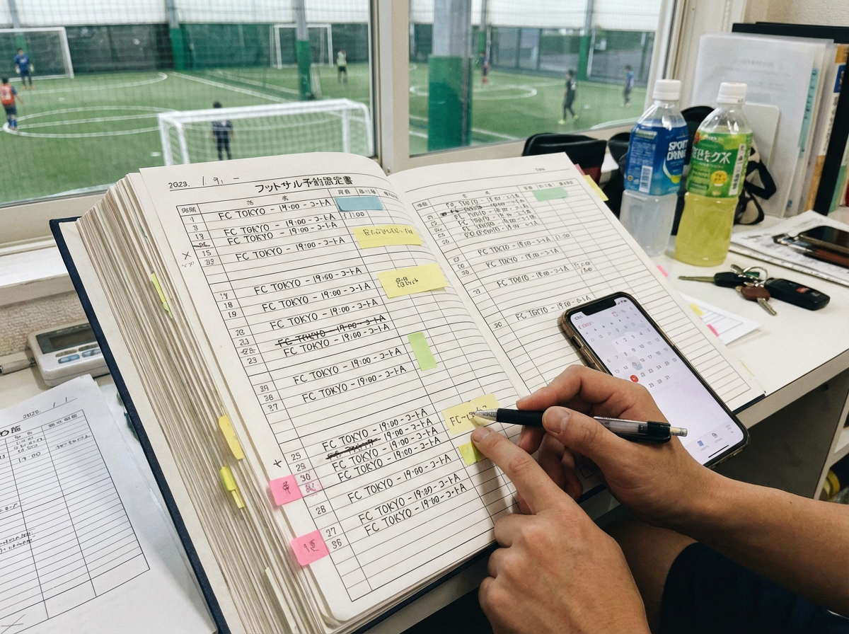 フットサルコートの管理業務には、複数の予約受付への対応や利用料金の計算など、さまざまな作業が含まれており、業務内容は煩雑です。例えば、予約受付を電話で行う場合、管理者は予約ごとに対応する必要があり、大きな負担がかかります。また、予約サイトや自社ホームページ、電話、メールなど複数の媒体から予約を受け付ける際は、これらの予約を集約し、日程調整を行う手間が発生します。